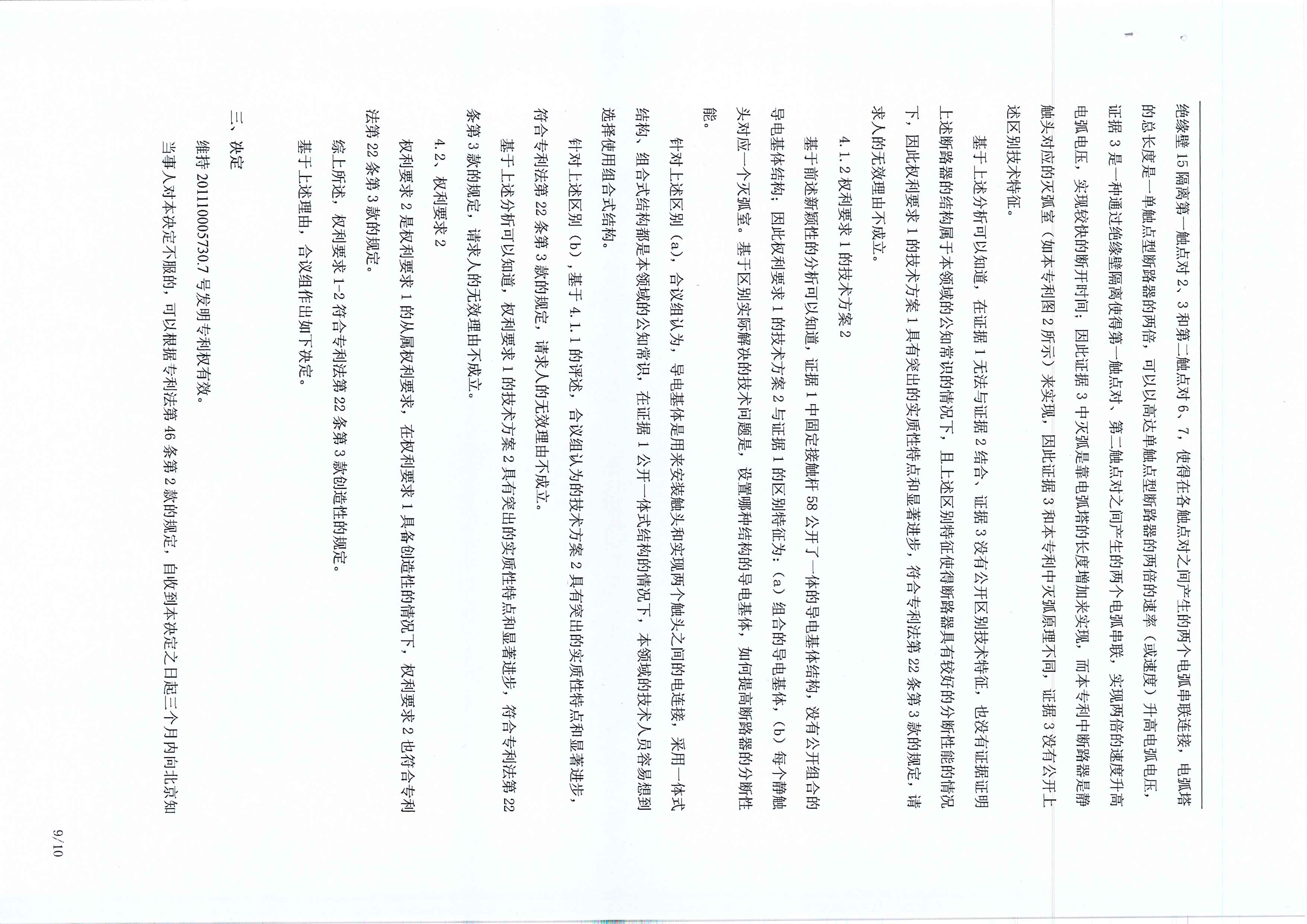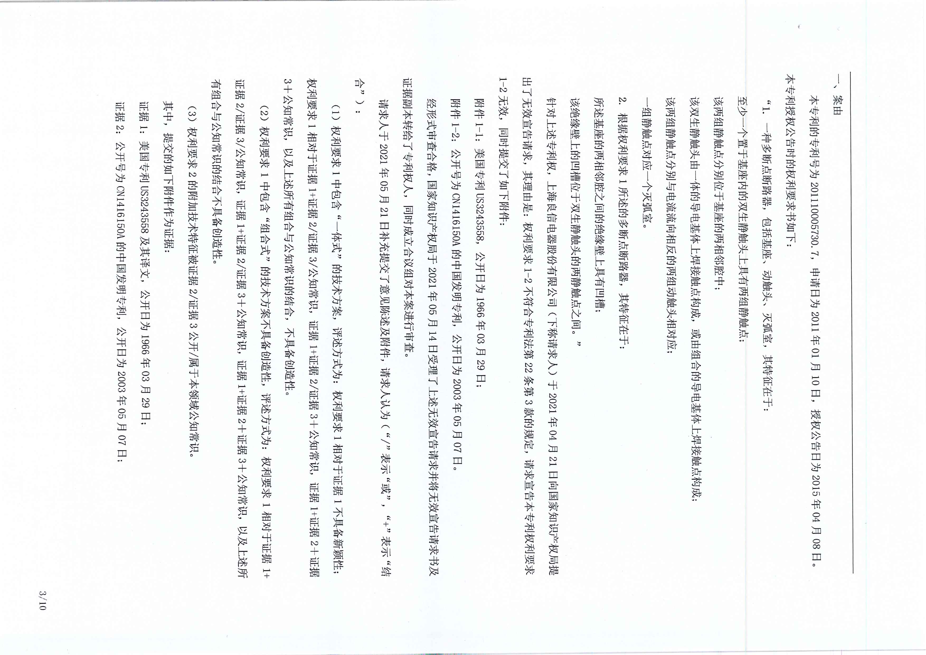 人民電器2011100057307無(wú)效宣告請(qǐng)求審查決定書-贏