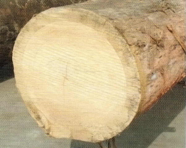 心邊材新鮮時區(qū)別不明顯,由于邊材易藍(lán)變,久則區(qū)別明顯。心材淺黃褐色至稻草黃褐色。邊材淺灰褐色,寬3~5 cm;常見白色樹膠圈。生長輪不明顯。